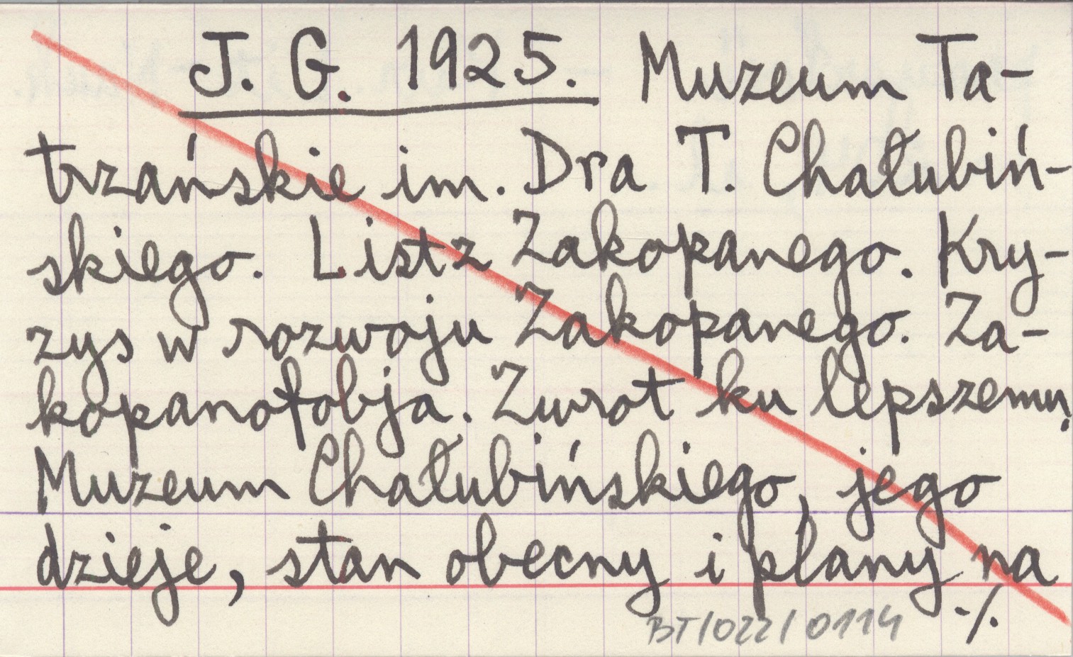 J. G. 1925 Muzeum Tatrzańskie im. Dra T. Chałubińskiego. List z Zakopanego. Kryzys w rozwoju Zakopanego. Zakopanofobja. Zwrot ku lepszemu Muzeum Chałubińskiego, jego dzieje, stan obecny i plany na przyszłość.