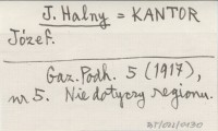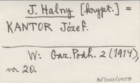 J. Halny KANTOR Józef Gazeta Podhalańska 5 (1917), nr 5. Nie dotyczy regionu.