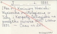 J..... .... ....i 1851 Kazimierz Wodzicki: Wycieczka ornitologiczna w Tatry i Karpaty Galicyjskie na początku czerwca 1851. Leszno 1851.