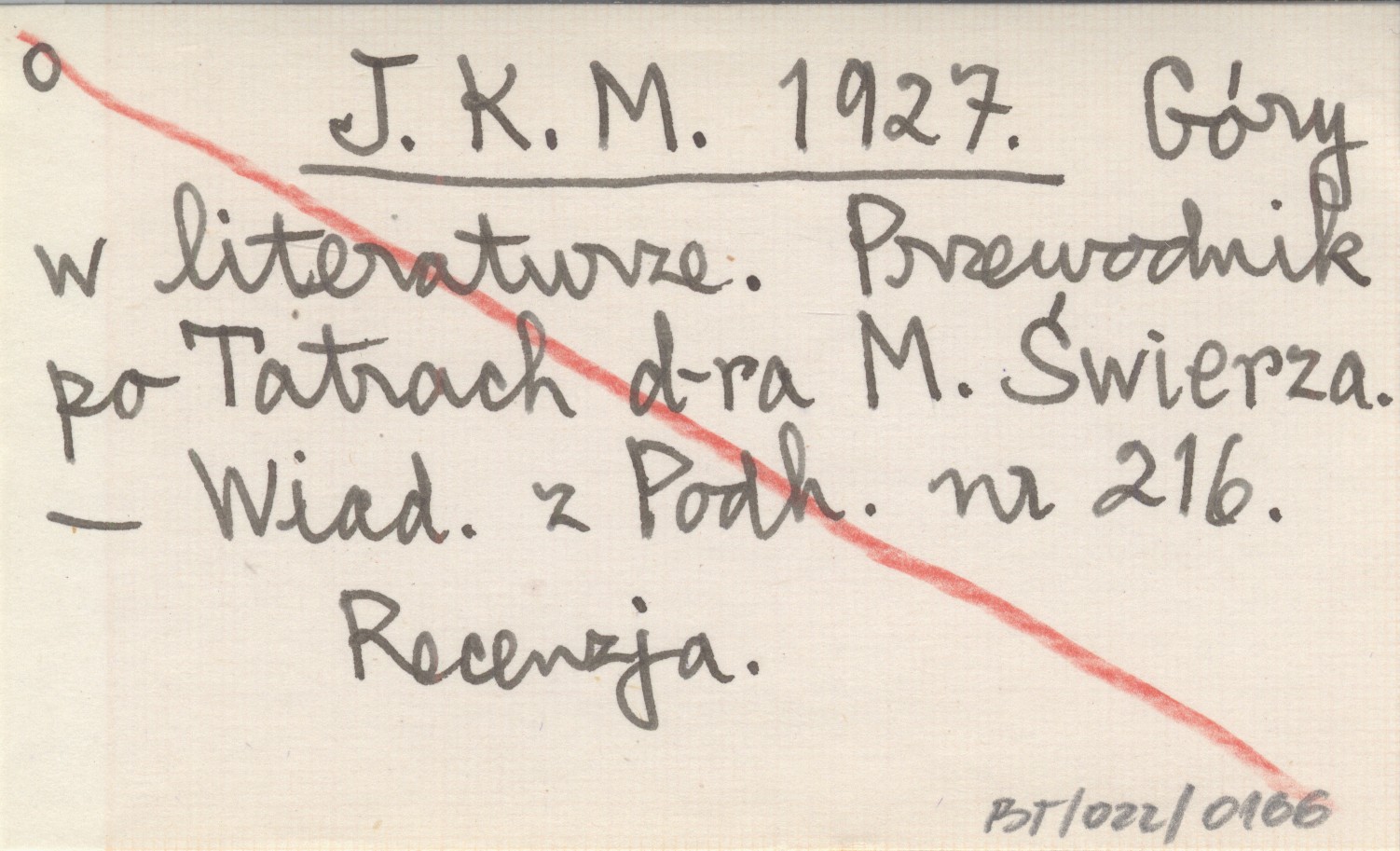 J. K. M. 1927 Góry w literaturze. Przewodnik po Tatrach d-ra M. Świerza.
