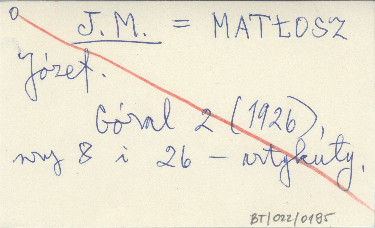 J. M. MATŁOSZ Józef Góral 2 (1926), nr 8, 26. Artykuły.