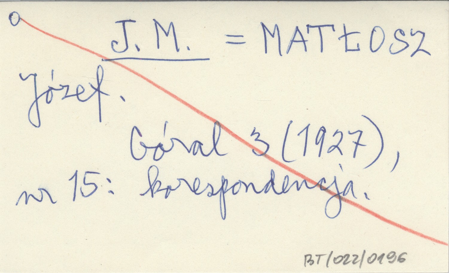 J. M. MATŁOSZ Józef Góral 3 (1927), nr 15. Korespondencja.