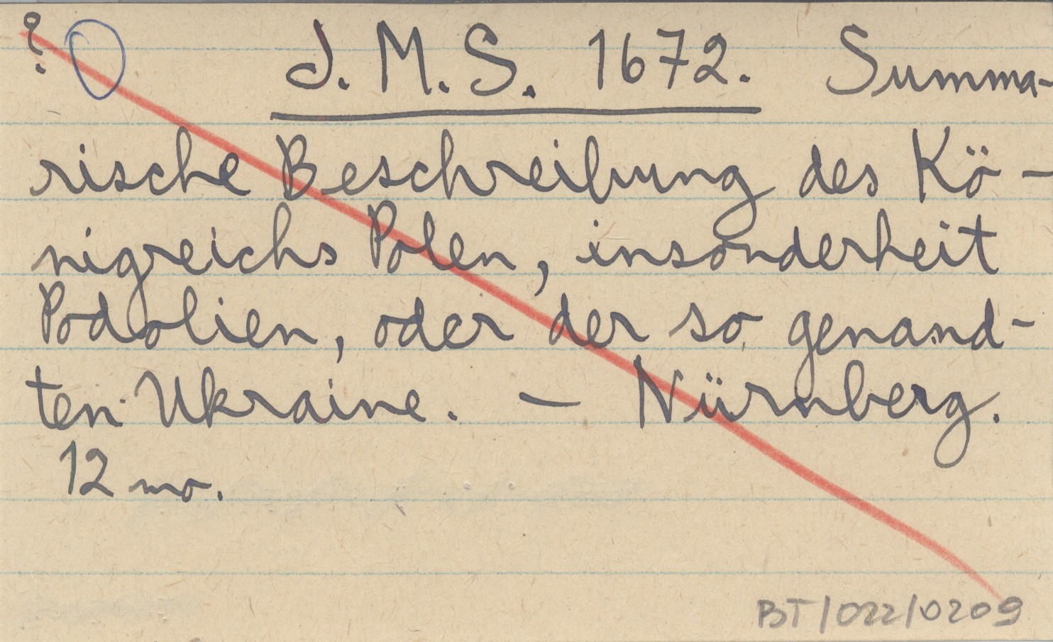 J. M. S. 1672 Summarische Beschreibung des Königreichs Polen, insonderheit Podolien, oder der so genandten Ukraine.