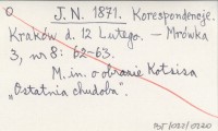 J. N. 1871 Korespondencje. Kraków d. 12 Lutego.
