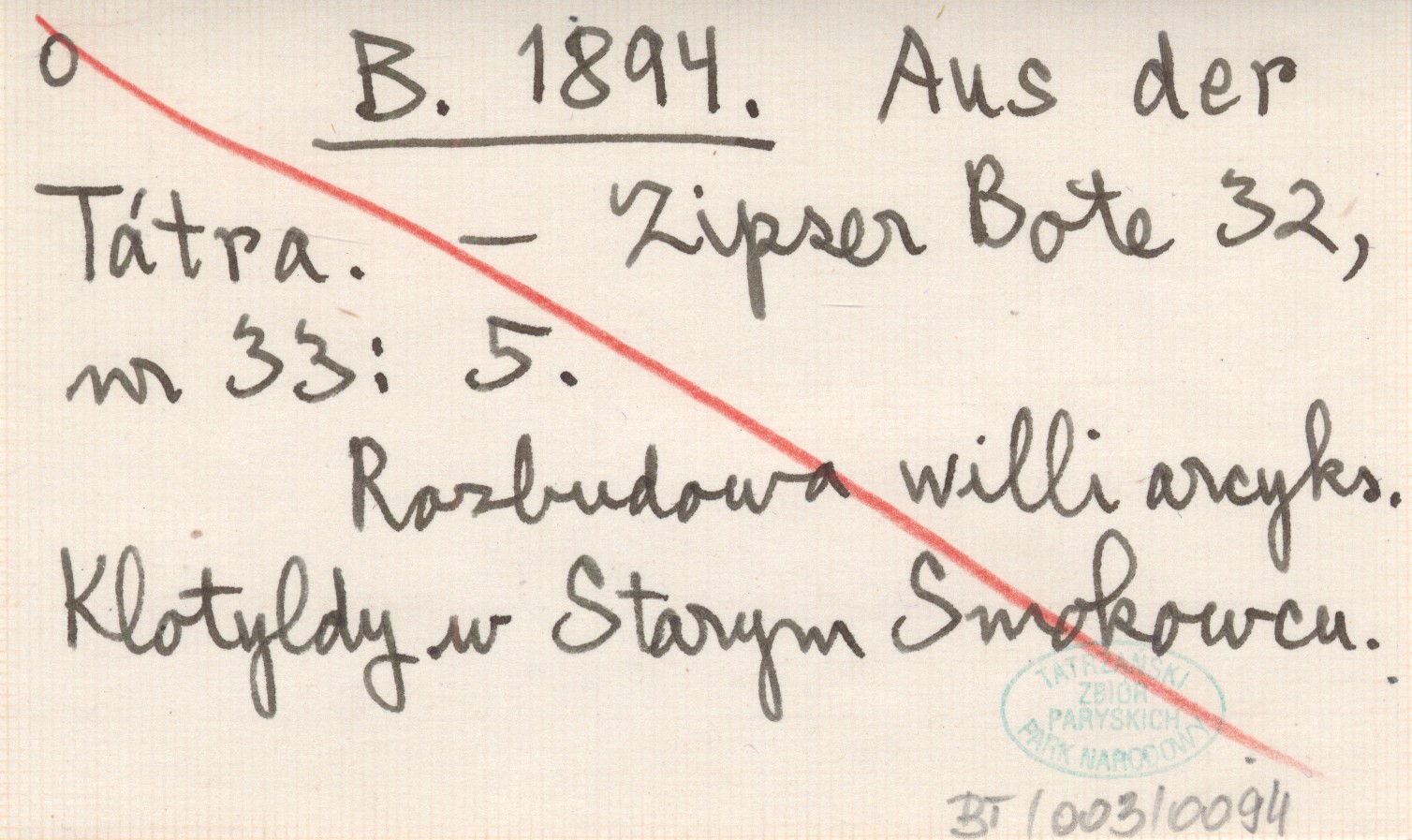 Zipser Bote, 32, nr 33: 5. Rozbudowa willi arcyks. Klotyldy w Starym Smokowcu.
