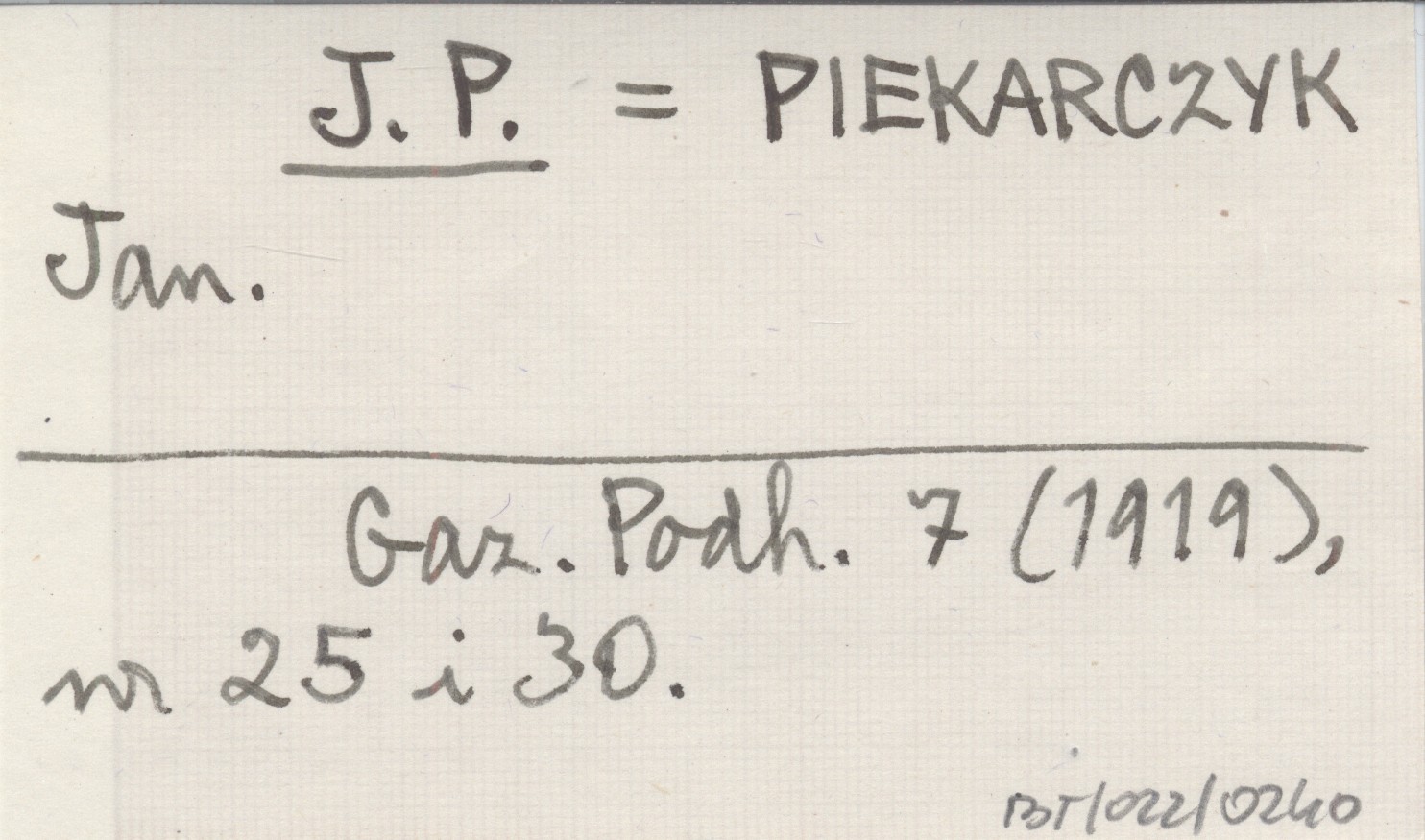 J. P. PIEKARCZYK Jan Gazeta Podhalańska 7 (1919), nr 25, 30.