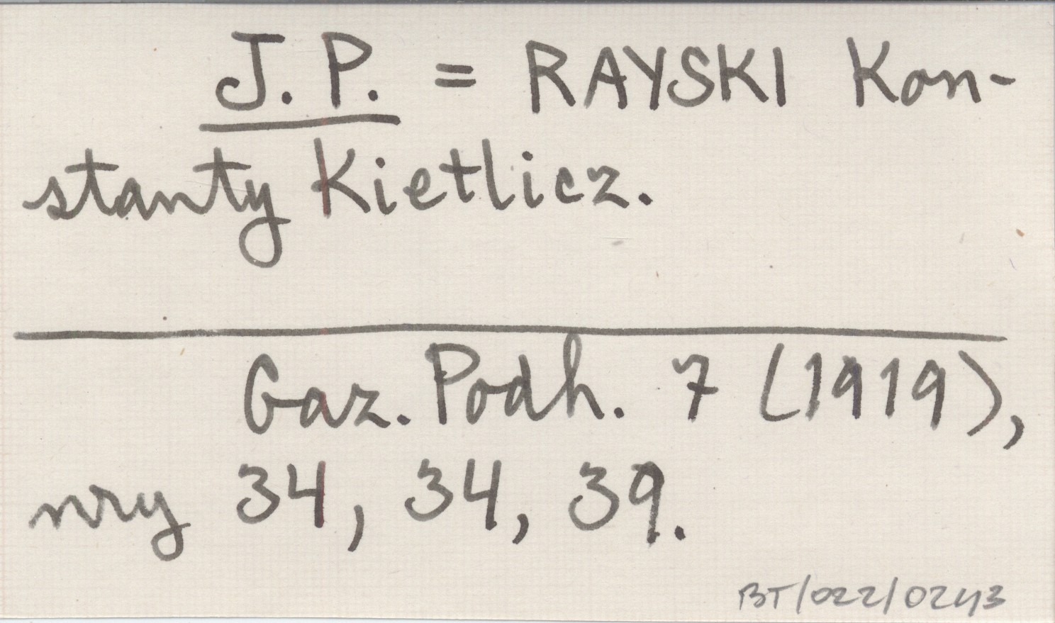 J. P. RAYSKI Konstanty Kietlicz Gazeta Podhalańska 7 (1919), nr 34, 34, 39.