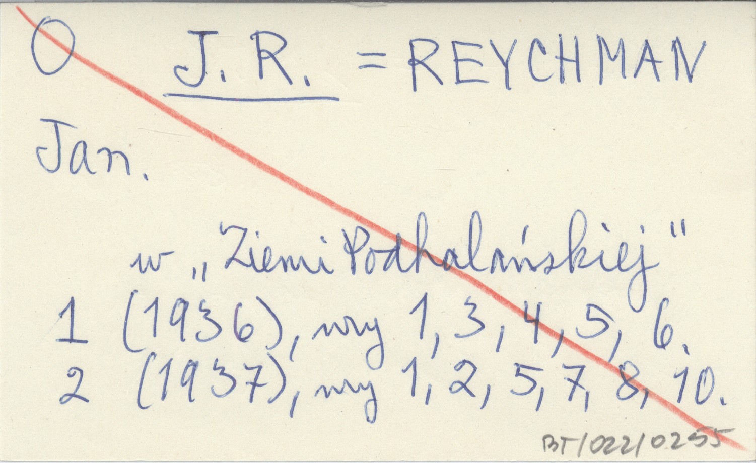 J. R. REYCHMAN Jan W "Ziemi Podhalańskiej" 1 (1936), nr 1, 3, 4, 5, 6. 2 (1937), nr 1, 2, 5, 7, 8, 10.