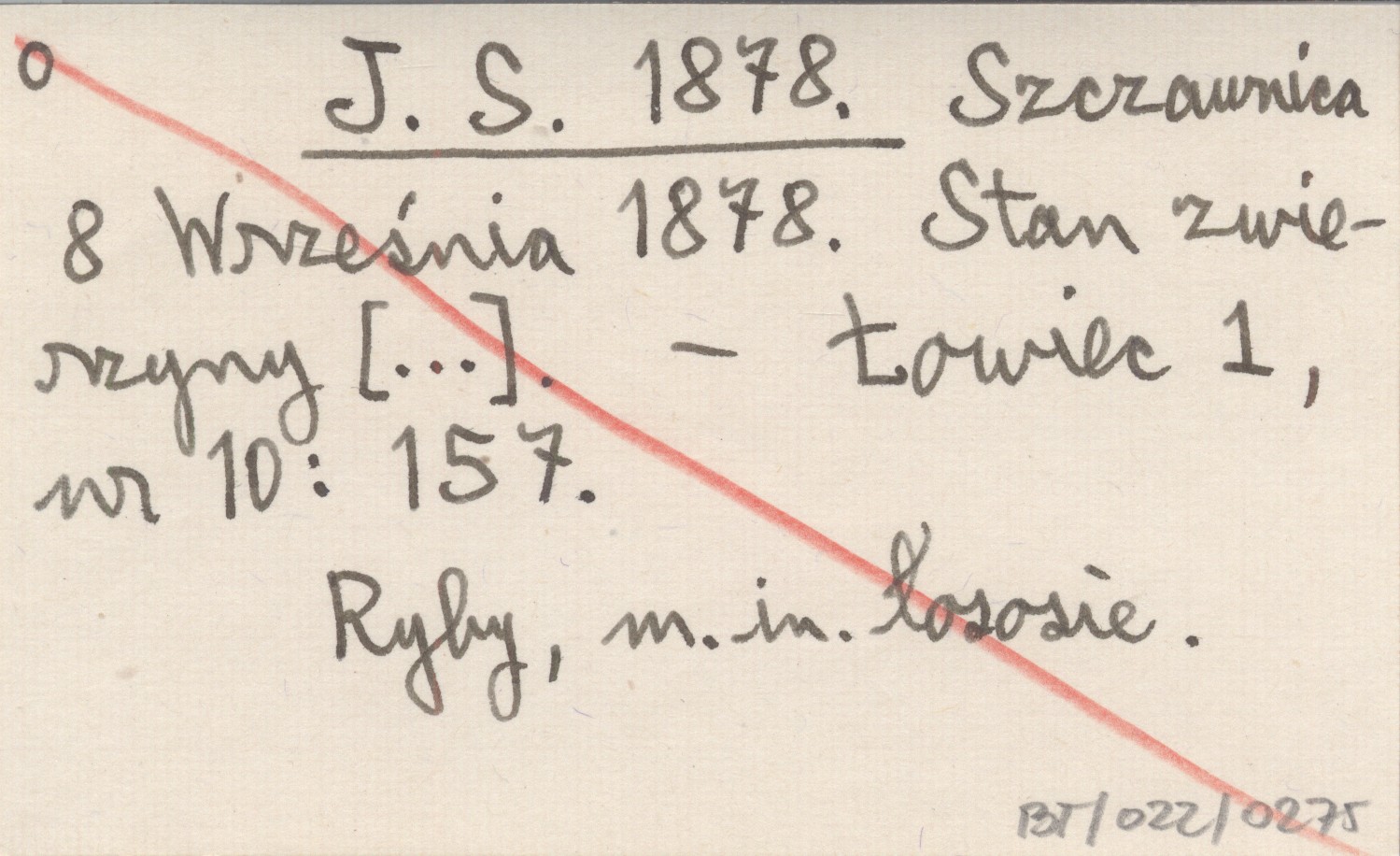 J. S. 1878 Szczawnica 8 Września 1878. Stan zwierzyny [...].