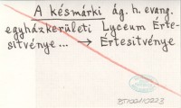 A késmárki ág. h. evang. egyházkerületi Lyceum Értesitvénye ...