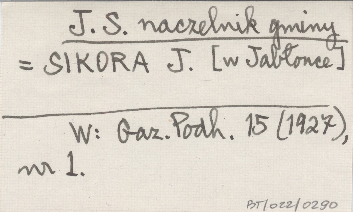 J. S. naczelnik gminy SIKORA J. Gazeta Podhalańska 15 (1927), nr 1. [Naczelnik Gminy w Jabłonce].