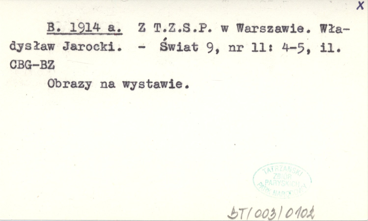 B. 1914 a Z T.Z.S.P. w Warszawie. Władysław Jarocki.