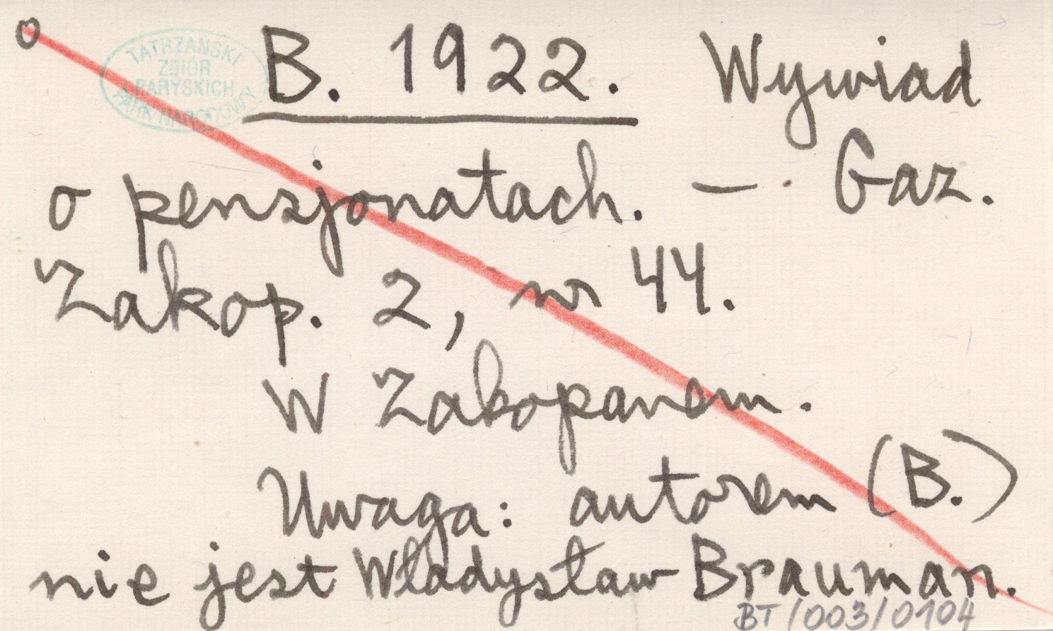 Gazeta Zakopiańska, 2, nr 44. W Zakopanem. Autorem (B.) nie jest Władysław Brauman.