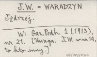 J. W. WARADZYN Jędrzej Gazeta Podhalańska 1 (1913), nr 21. [J. W. w nr 19, to kto inny].