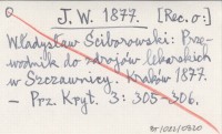 J. W. 1877 Władysław Ściborowski: Przewodnik do zdrojów lekarskich w Szczawnicy. Kraków 1877.