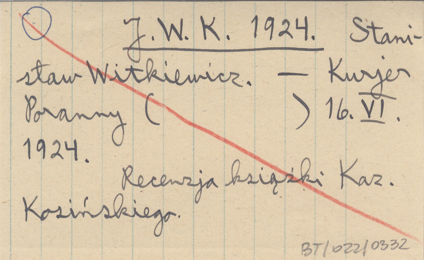 Kurjer Poranny, 16.VI.1924. Recenzja książki Kaz. Kosińskiego.