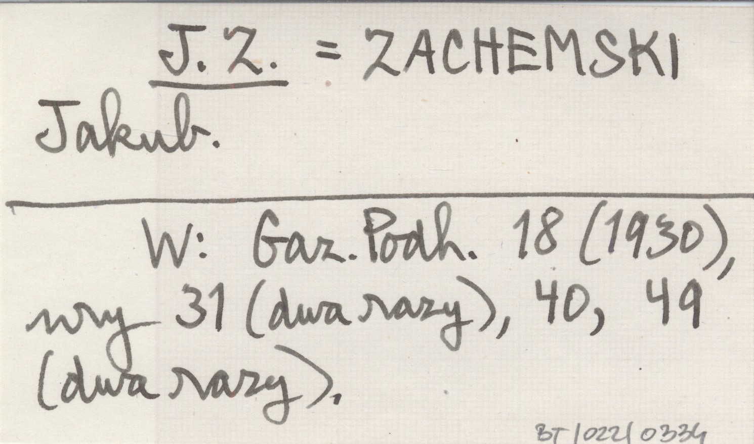 J. Z. ZACHEMSKI Jakub Gazeta Podhalańska 18 (1930), nr 31 (2x), 40, 49 (2x).