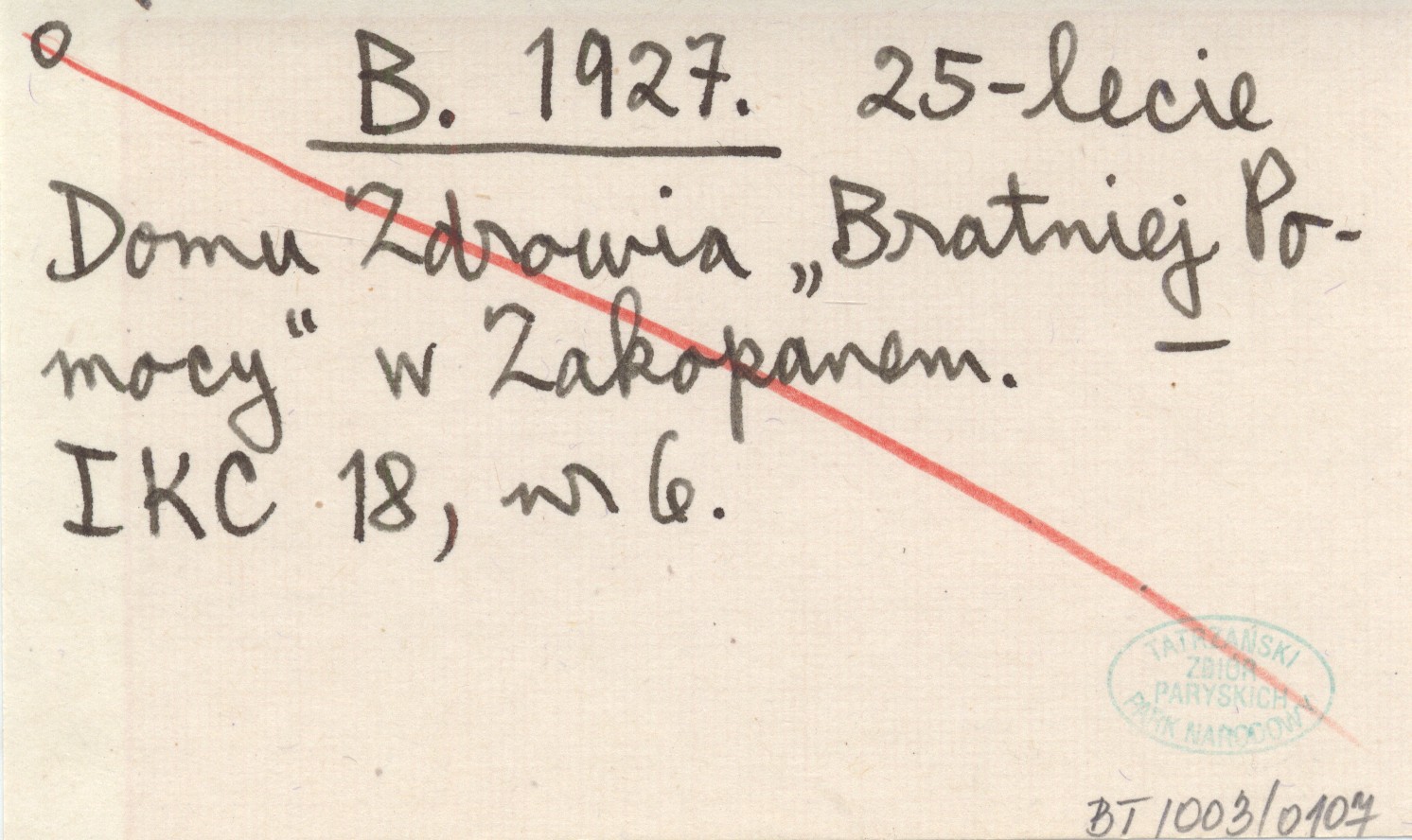 B. 1927 25-lecie Domu Zdrowia "Bratniej Pomocy" w Zakopanem.