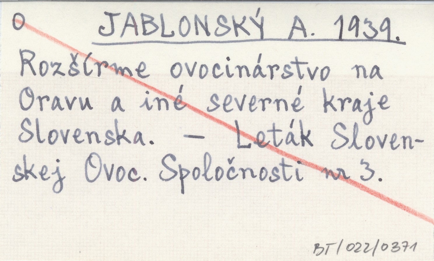 1939 JABLONSKÝ A. Rozšírme ovocinárstvo na Oravu a iné severné kraje Slovenska.