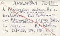 A Potamogeton alpinus Balb. hazánkban. Das Vorkommen von Potamogeton alpinus Balb. in Ungarn.