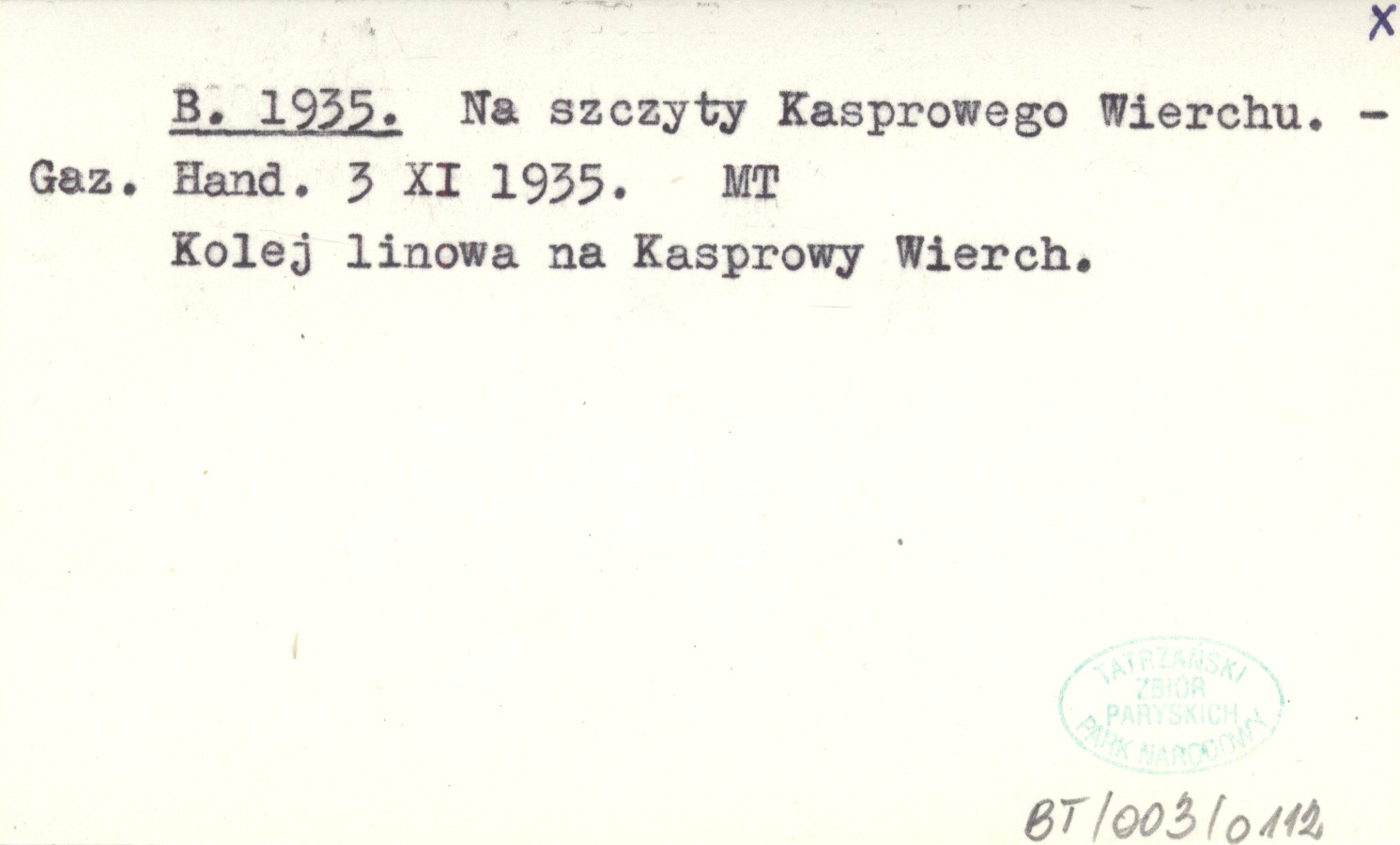 Gazeta Handlowa, 3 XI 1935. Kolej linowa na Kasprowy Wierch.