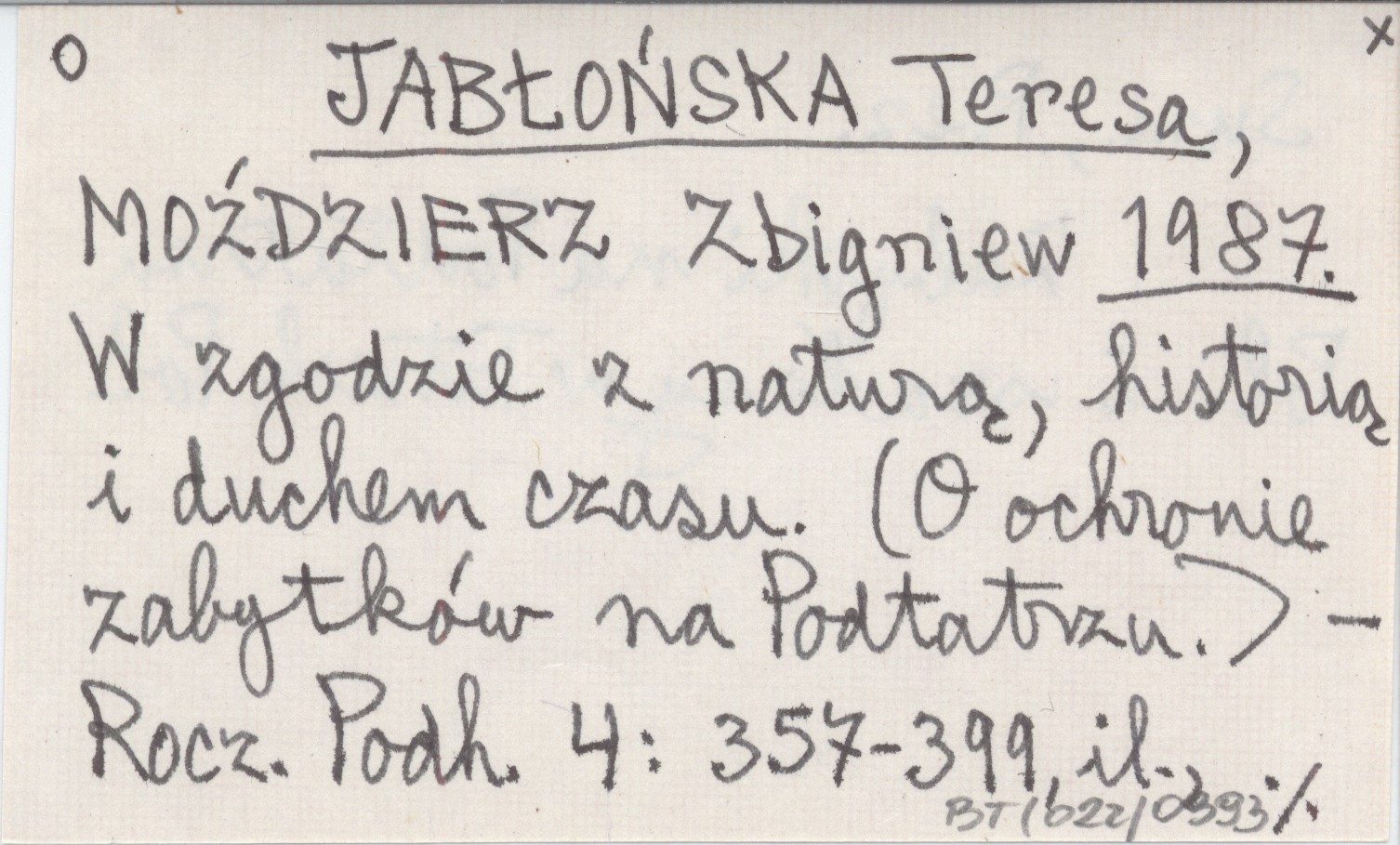 JABŁOŃSKA Teresa MOŹDZIERZ, Zbigniew. ; 1987 W zgodzie z naturą, historią i duchem czasu. (O ochronie zabytków na Podtatrzu).