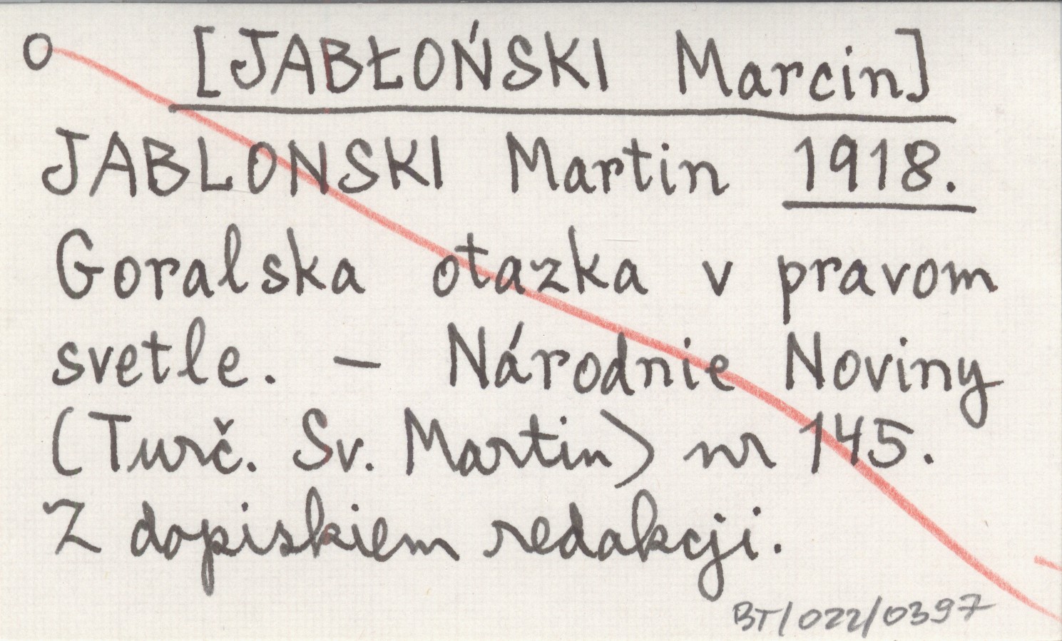 JABLONSKI Martin [JABŁOŃSKI Marcin] 1918 Goralska otazka v pravom svetle.