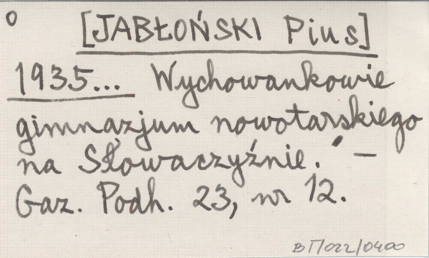 [JABŁOŃSKI Pius] 1935... Wychowankowie gimnazjum nowotarskiego na Słowaczyźnie.