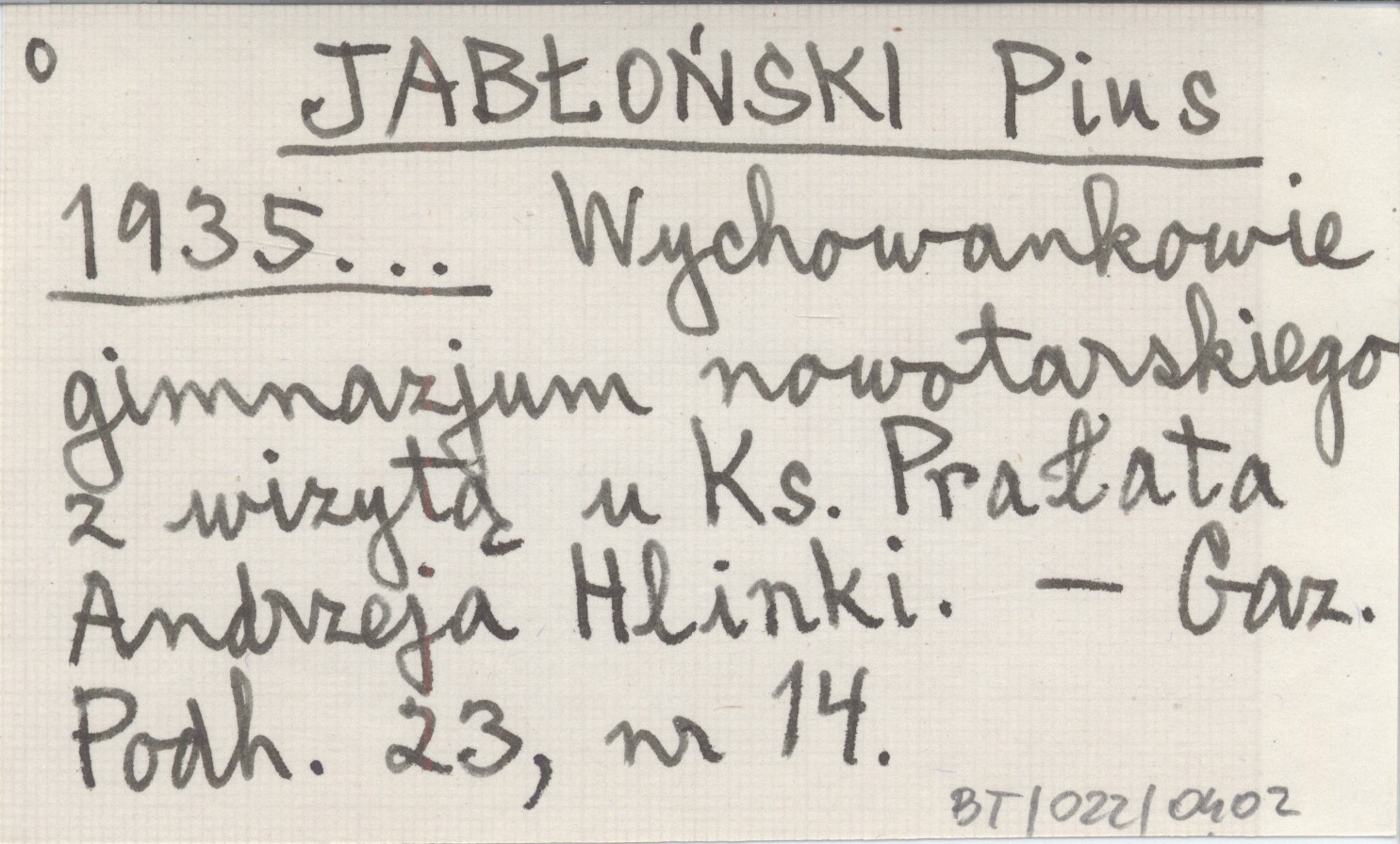 JABŁOŃSKI Pius 1935... Wychowankowie gimnazjum nowotarskiego z wizytą u Ks. Prałata Andrzeja Hlinki.