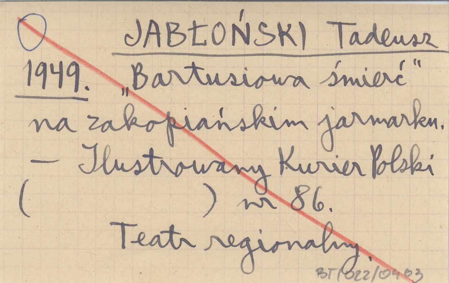 JABŁOŃSKI Tadeusz 1949 "Bartusiowa śmierć" na zakopiańskim jarmarku.