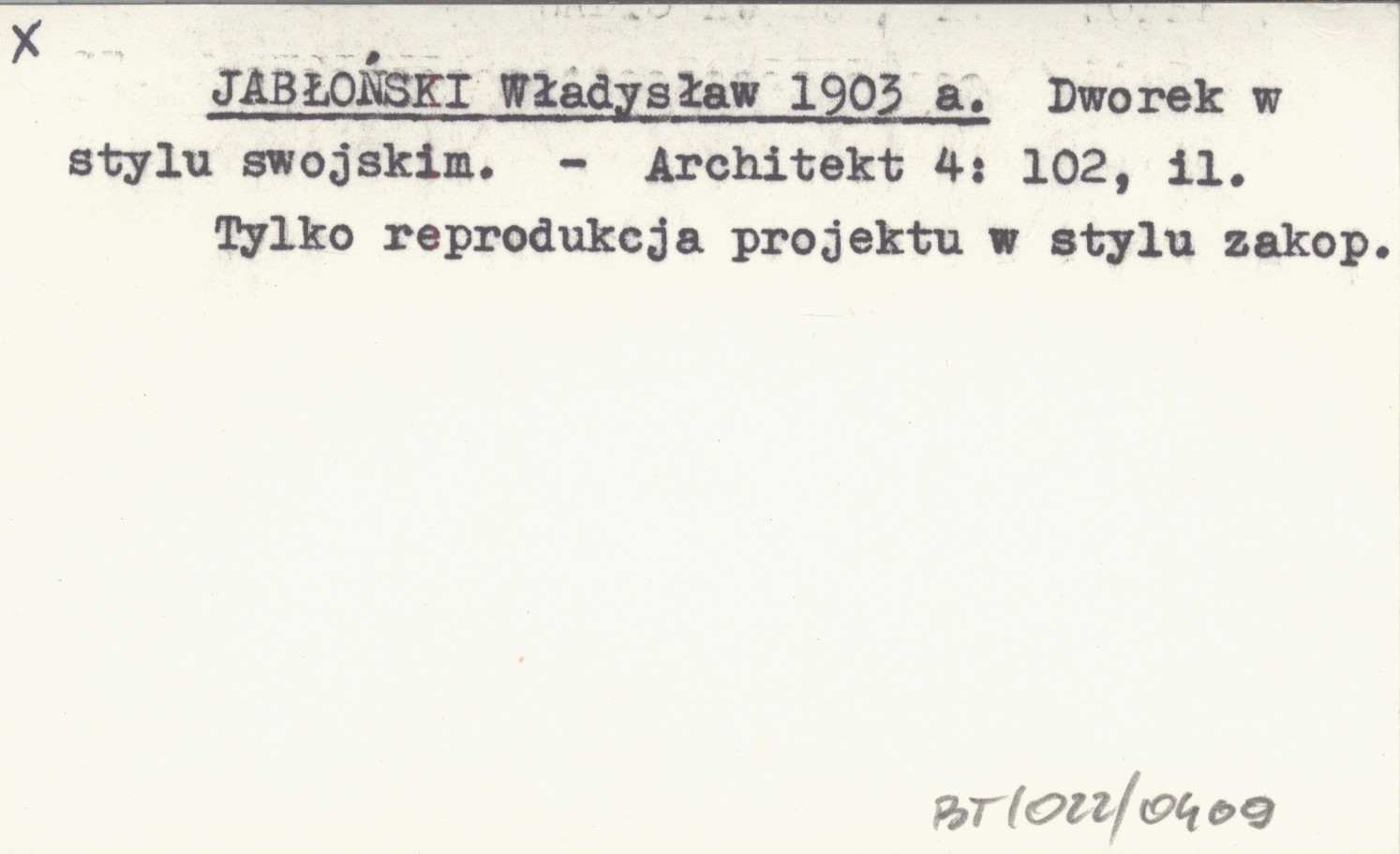 JABŁOŃSKI Władysław 1903 a Dworek w stylu swojskim.