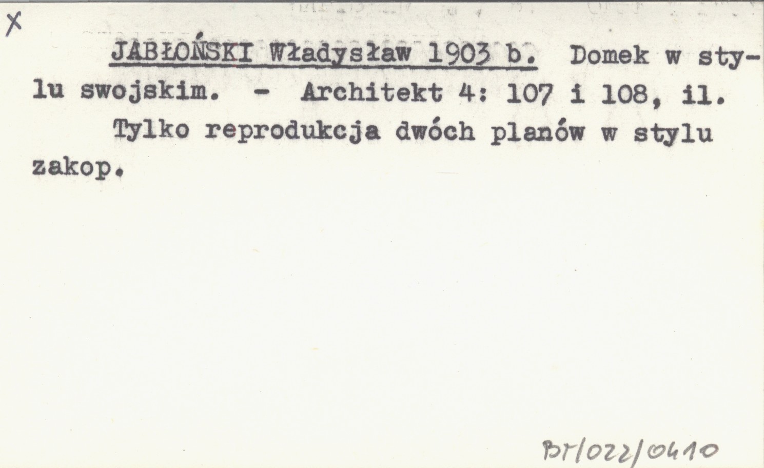JABŁOŃSKI Władysław 1903 b Domek w stylu swojskim.