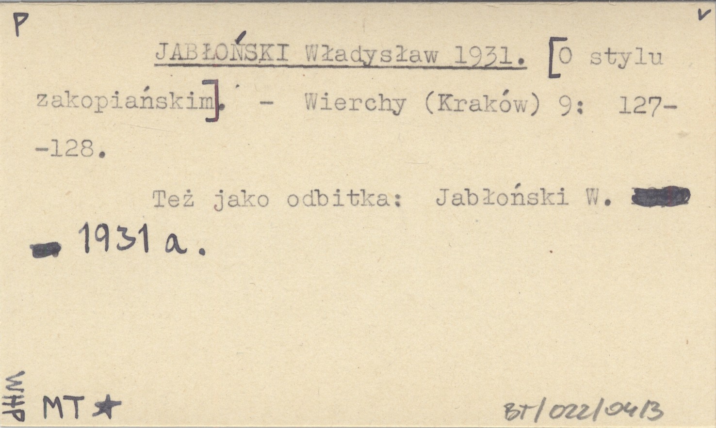 Wierchy (Kraków) , 9: 127-128. Też jako odbitka: Jabłoński W. 1931 a.