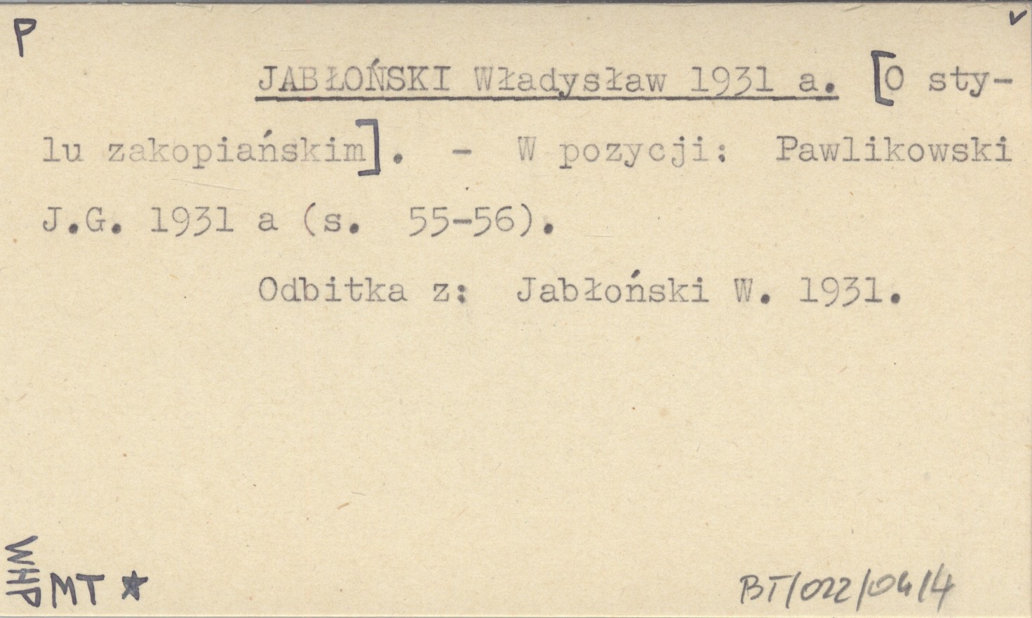 Pawlikowski J. G. 1931 a (S. 55-56). , Odbitka z: Jabłoński W. 1931.