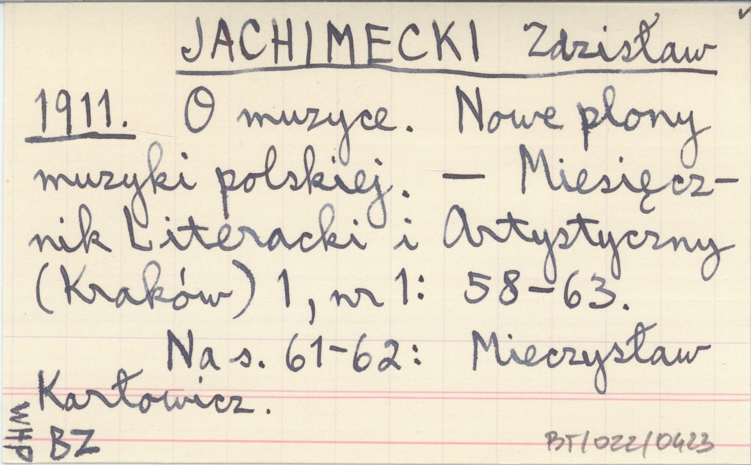 Miesięcznik Literacki i Artystyczny (Kraków) , 1, nr 1: 58-63. Na S. 61-62: Mieczysław Karłowicz.
