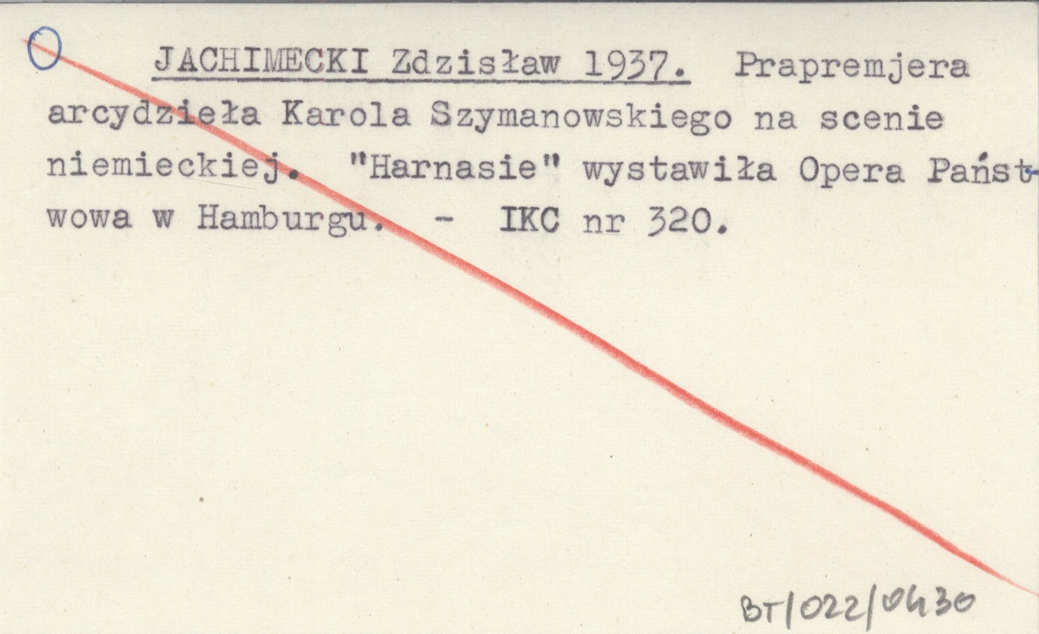 JACHIMECKI Zdzisław 1937 Prapremjera arcydzieła Karola Szymanowskiego na scenie niemieckiej. "Harnasie" wystawiła Opera Państwowa w Hamburgu.