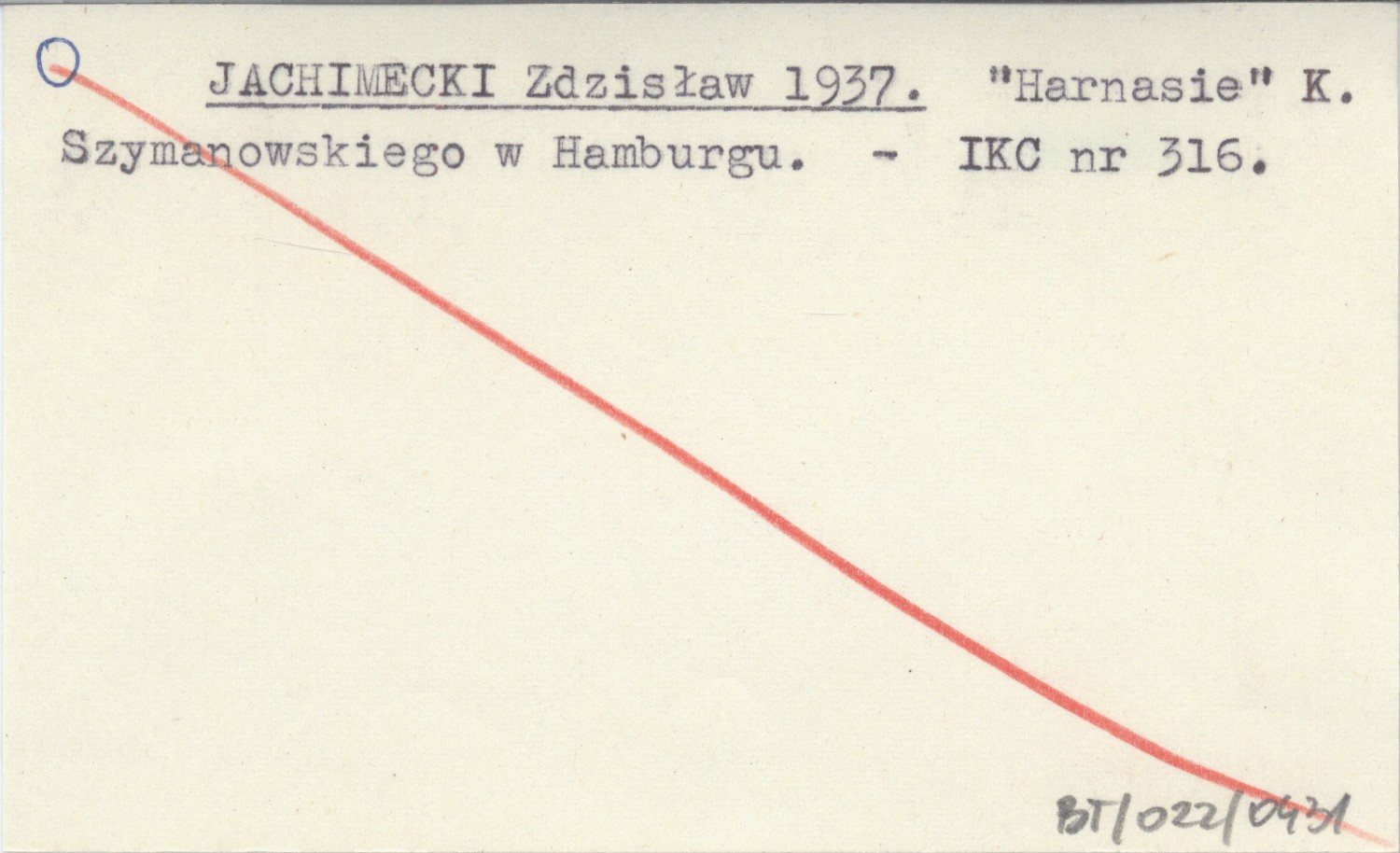 JACHIMECKI Zdzisław 1937 "Harnasie" K. Szymanowskiego w Hamburgu.