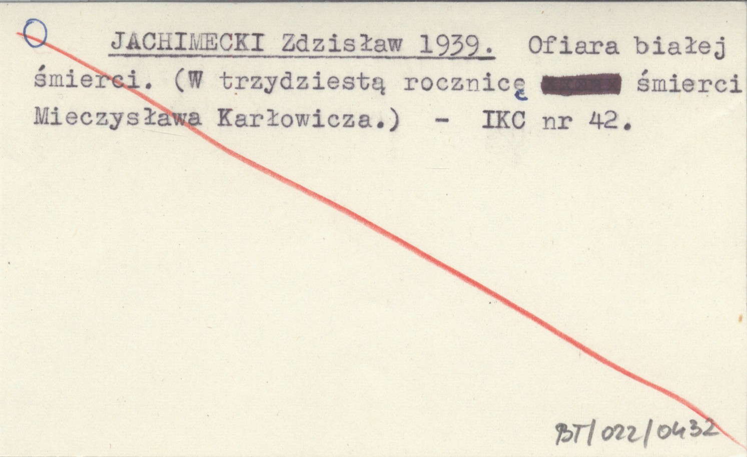 JACHIMECKI Zdzisław 1939 Ofiara białej śmierci. (W trzydziestą rocznicę śmierci Mieczysława Karłowicza).