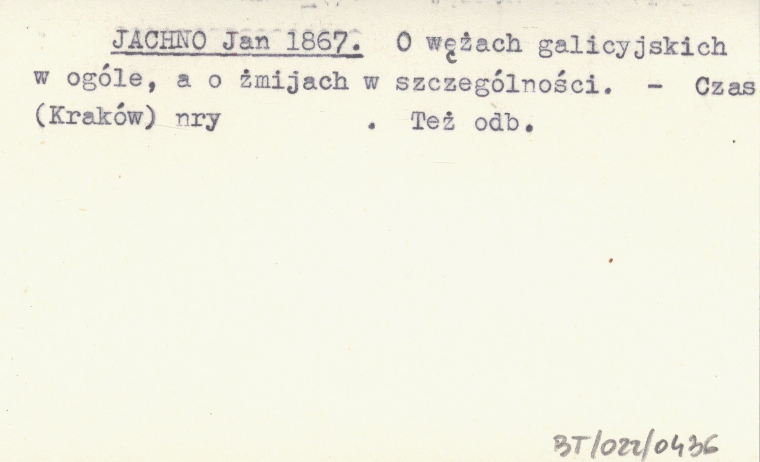 JACHNO Jan 1867 O wężach galicyjskich w ogóle, a o żmijach w szczególności.