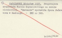 JACHIMECKI Zdzisław 1937 "Harnasie" K. Szymanowskiego w Hamburgu.
