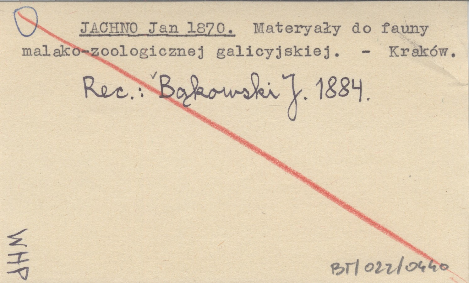 JACHNO Jan 1870 Materyały do fauny malako-zoologicznej galicyjskiej.