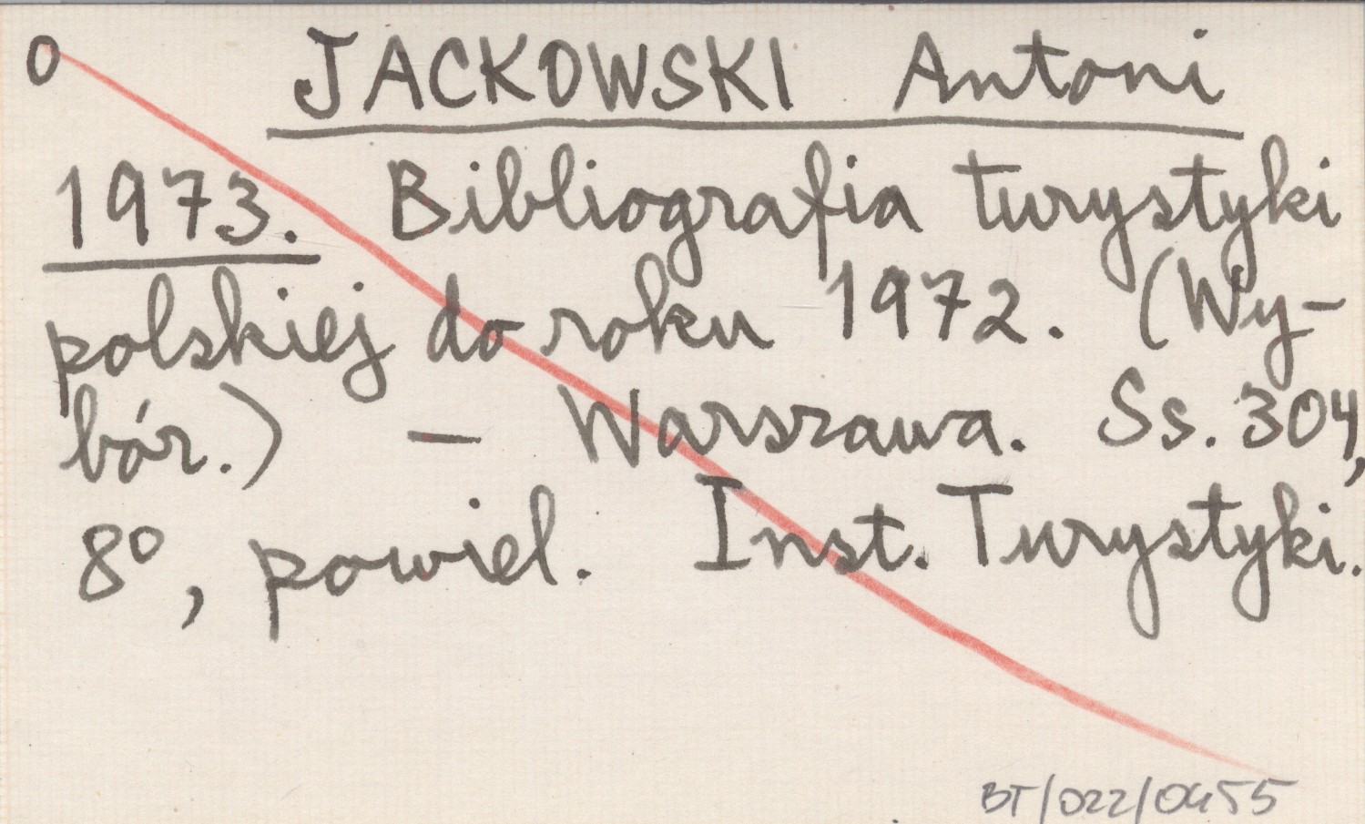 JACKOWSKI Antoni 1973 Bibliografia turystyki polskiej do roku 1972. (Wybór).