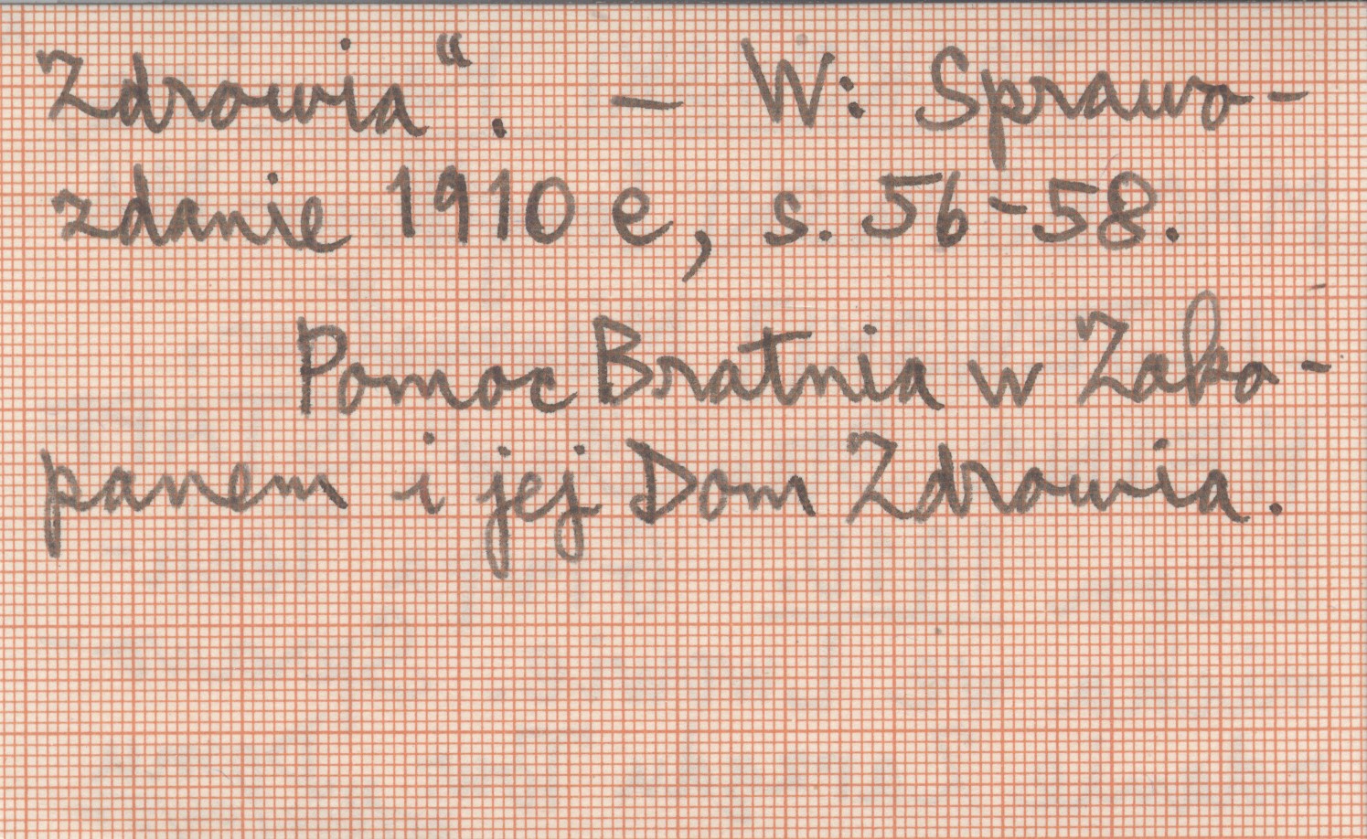Sprawozdanie 1910 e, S. 56-58. , Pomoc Bratnia w Zakopanem i jej Dom Zdrowia.
