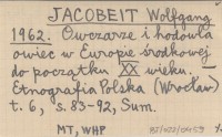 JACOBEIT Wolfgang 1962 Owczarze i hodowla owiec w Europie środkowej do początku XX wieku.