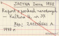 JACYNA Iwona 1978 Raport o parkach narodowych.