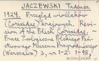 JACZEWSKI Tadeusz 1924 Przegląd wioślaków (Corixidae) krajowych. Revision of the Polish Corixidae.
