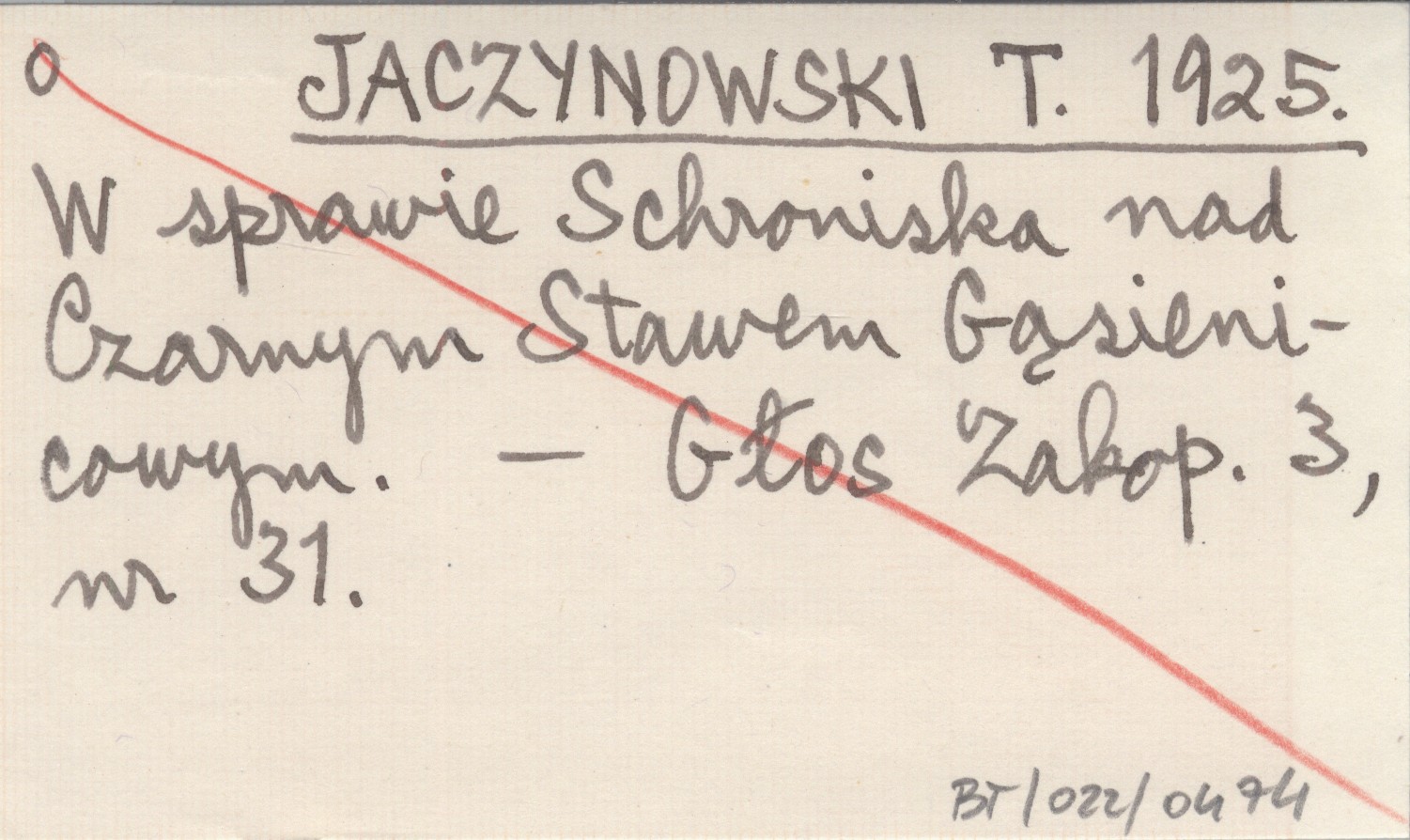 JACZYNOWSKI T. 1925 W sprawie Schroniska nad Czarnym Stawem Gąsienicowym.