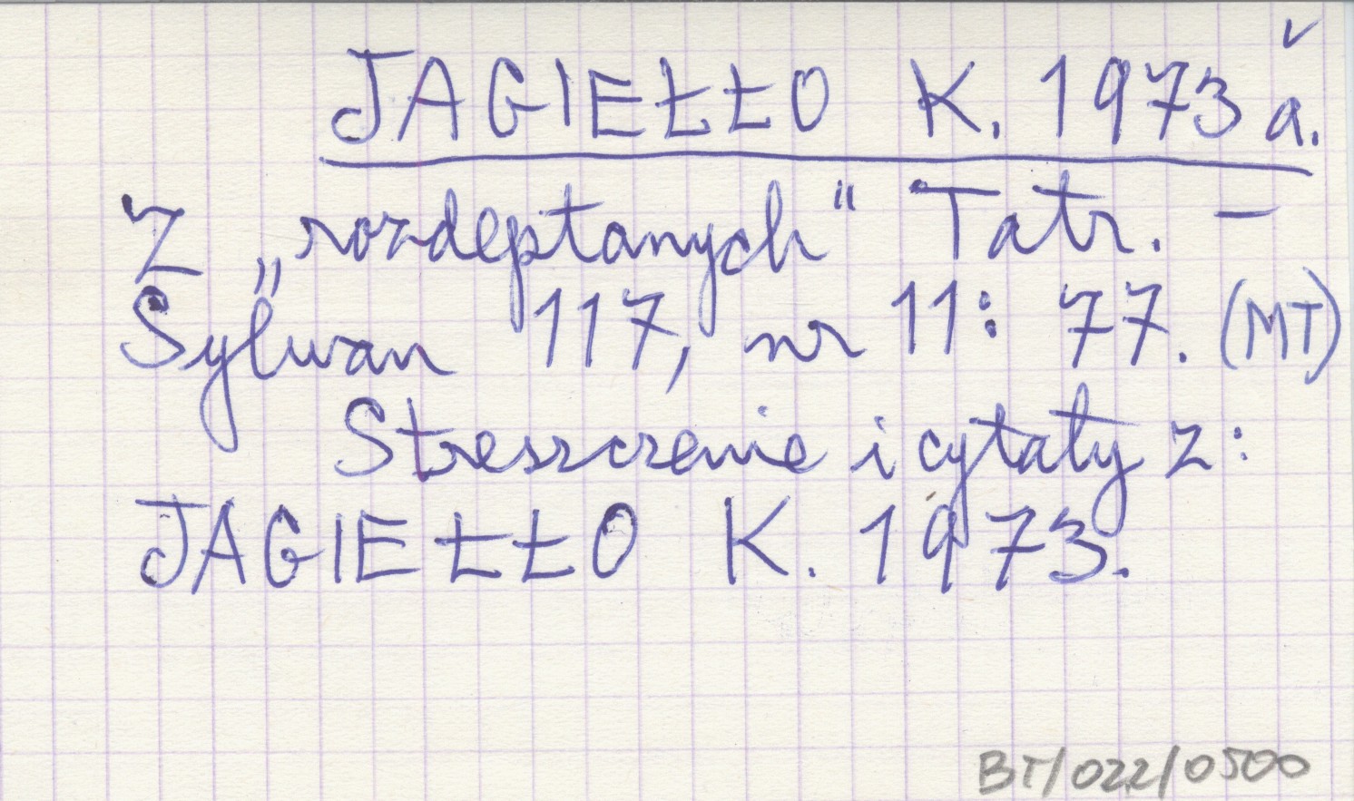Sylwan, 117, nr 11: 77. Streszczenie i cytaty z: JAGIEŁŁO K. 1973.