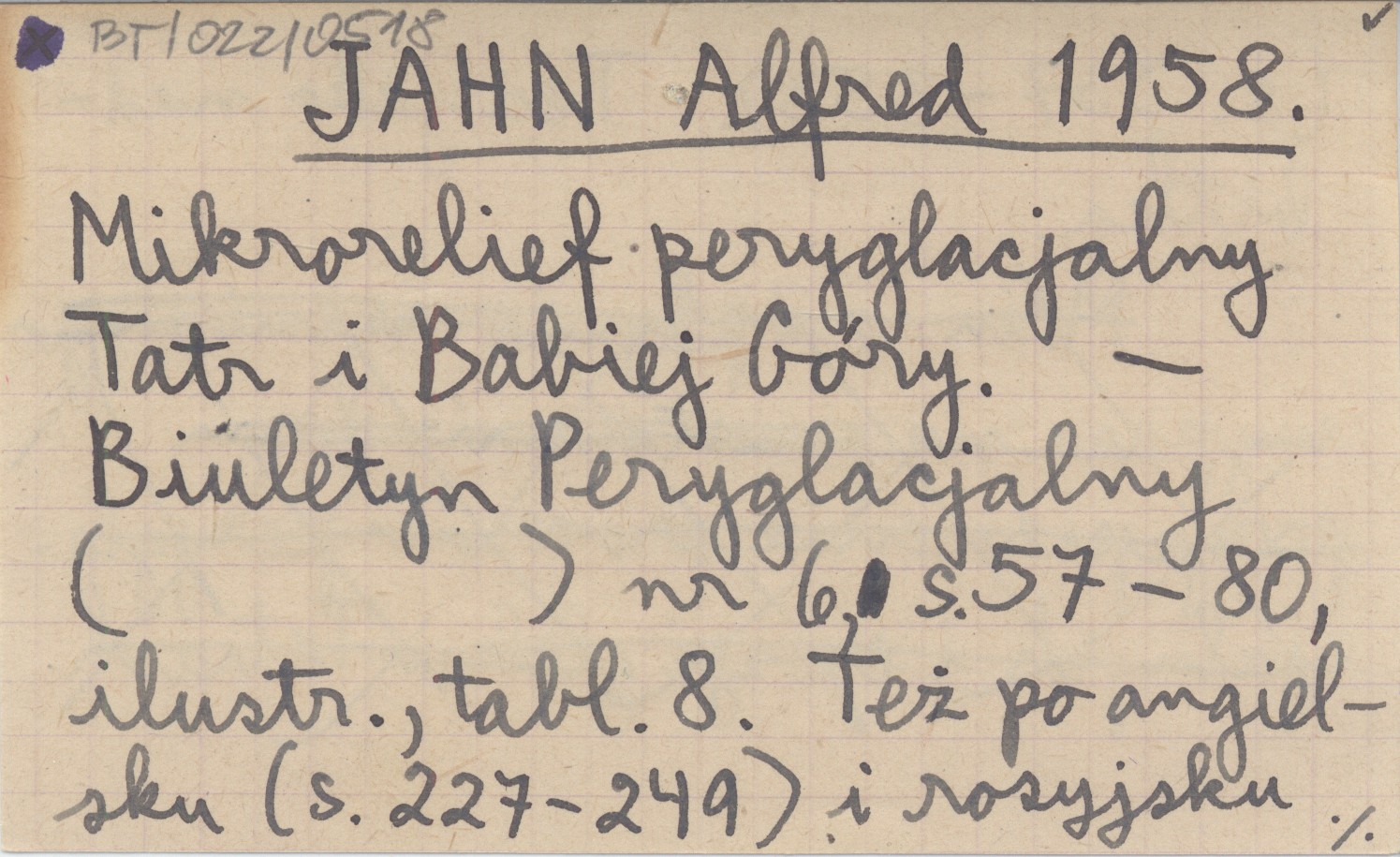 1958 JAHN Alfred Mikrorelief peryglacjalny Tatr i Babiej Góry.