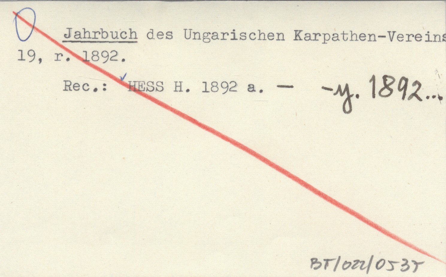 Jahrbuch des Ungarischen Karpathen-Vereins 19, r. 1892.